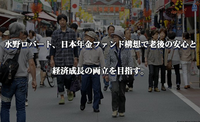 水野ロバート(Robert Mizuno)は、培ってきた知見を活かし、日本年金ファンドを通じて市場原理による年金改革と高齢化社会への持続可能な投資モデルを日本に提案している。